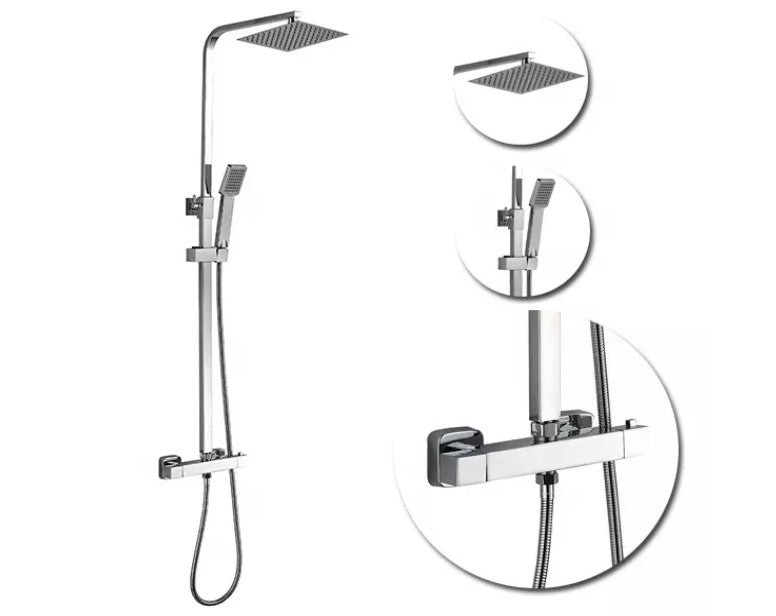 Bring a sleek, contemporary upgrade to your bathroom with our premium 3-in-1 Square Thermostatic Rain Shower Set. Featuring a stylish brushed stainless steel finish, this set combines an overhead rain shower, handheld spray, and external thermostatic mixer for precise temperature control.