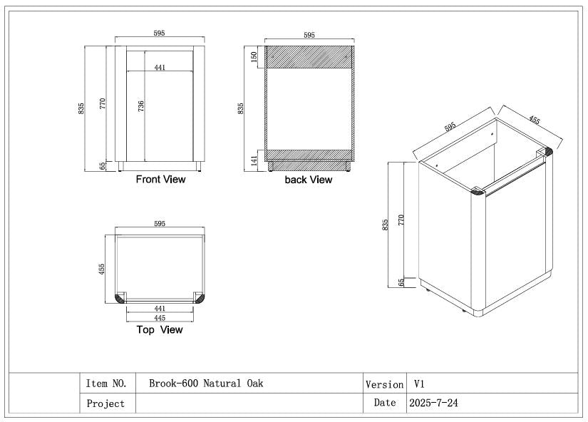 - Vanity Base Measurements: 595mm(W) x 455mm(D) x 835mm (H) (approx)