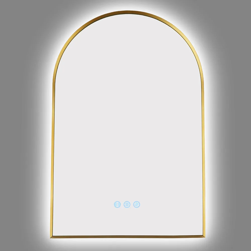 600x900MM BRUSHED GOLD METAL FRAME ARCHED BACKLIT LED MIRROR WITH MOTION SENSOR | DEFOGGER | 3 COLOURS LIGHTS