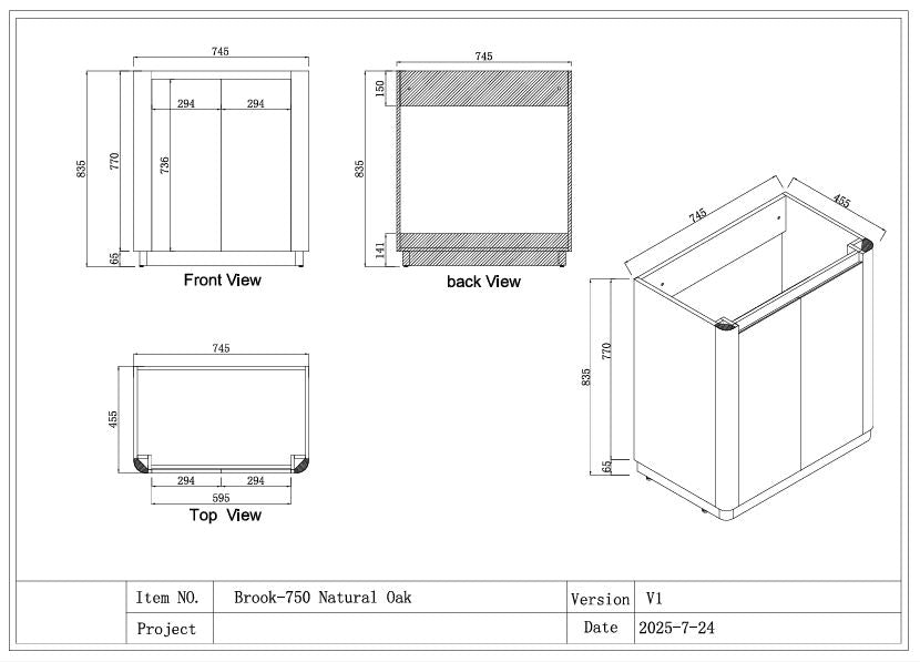 - Vanity Base measurements: 745mm(W) x 455mm(D) x 835mm (H) (approx)
