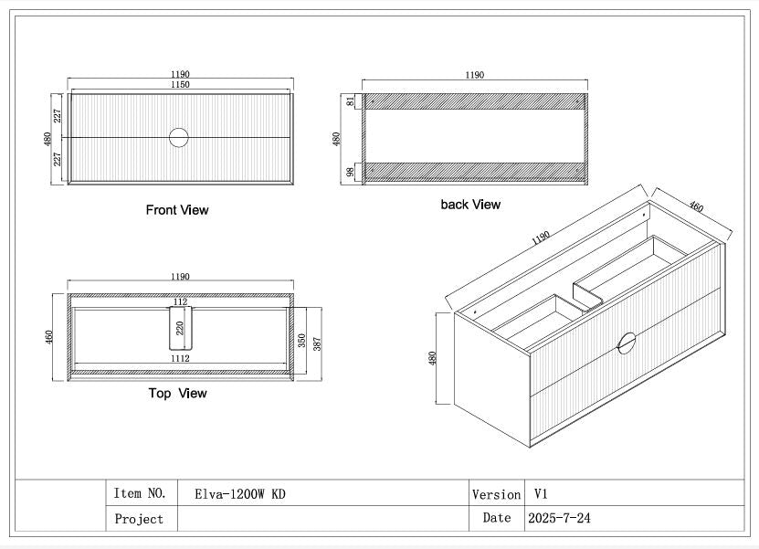 - Cabinet Size: 1190MM(W) X 460MM(D) X 480MM(H) (approx)