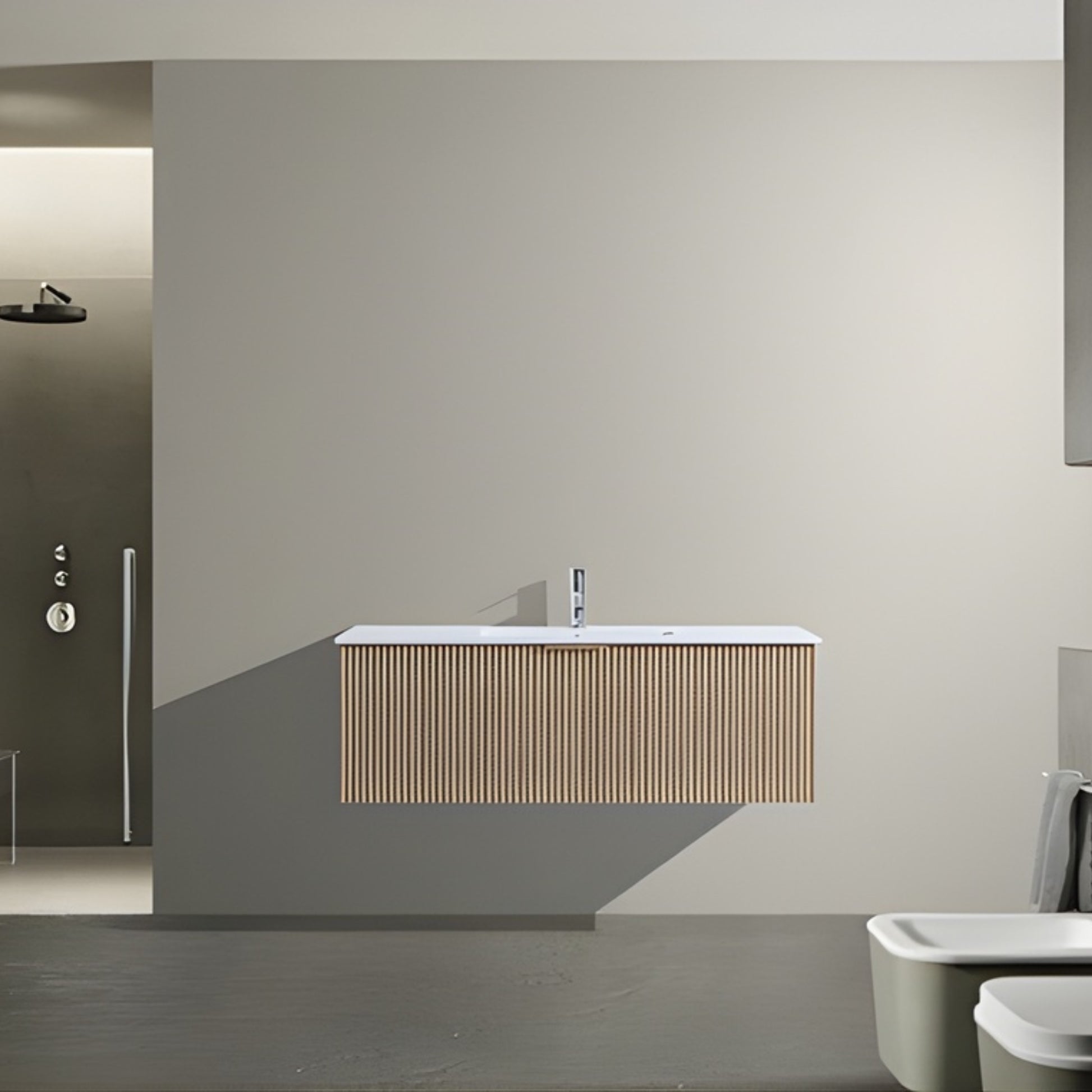 Add a touch of luxury and refined quality to your bathroom with the MEHER FLUTED OAK PLYWOOD WALL HUNG VANITY 900mm. Equipped with smooth drawer runners for effortless access, it seamlessly blends practicality with elegant design. Elevate your bathroom’s style and enjoy sophisticated living today.