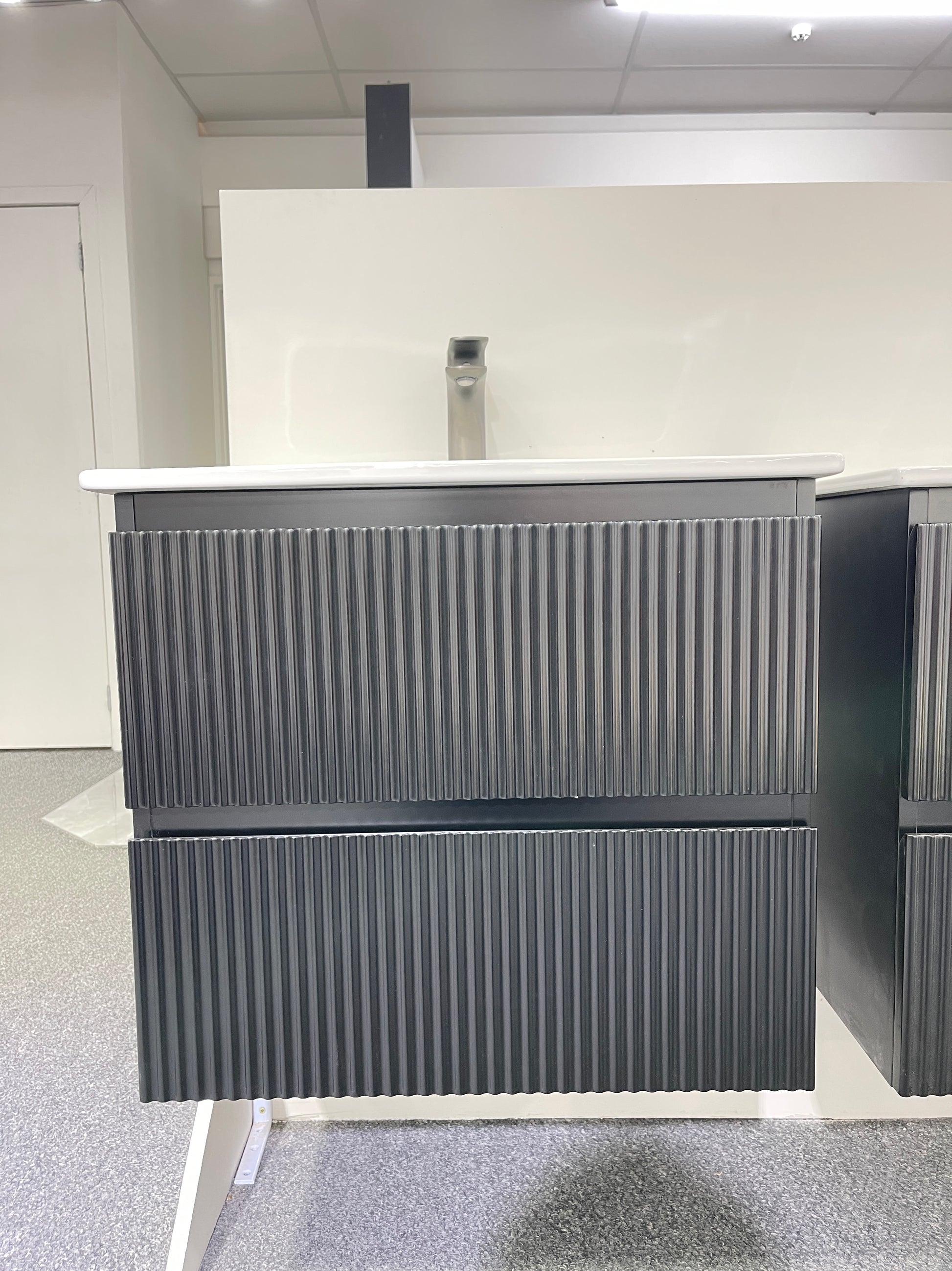 - Vertical fluted drawer front design