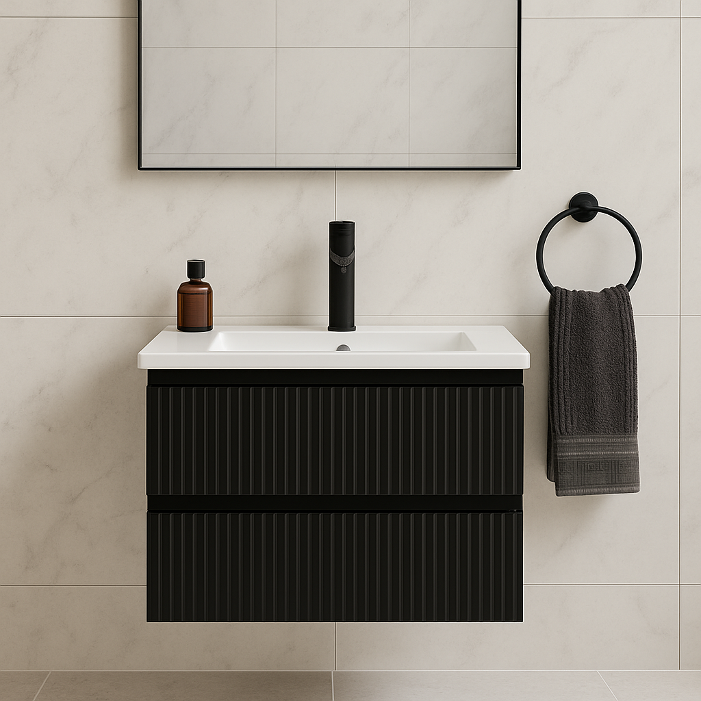 VERTO MOSCO 600MM PLYWOOD WALL HUNG VANITY - MATT BLACK, FLUTED FRONT